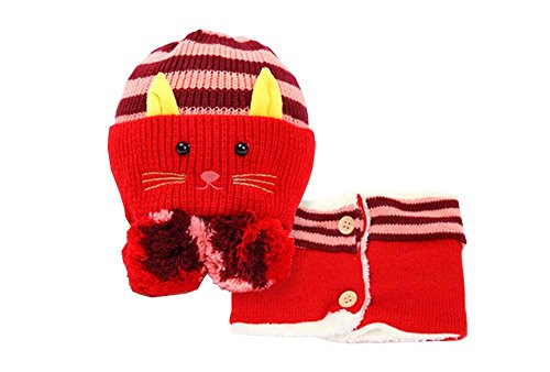 ユニークな冬の赤ん坊の帽子/キャップ&マフラー便利なかわいいウールの赤ん坊の帽子セットレッド