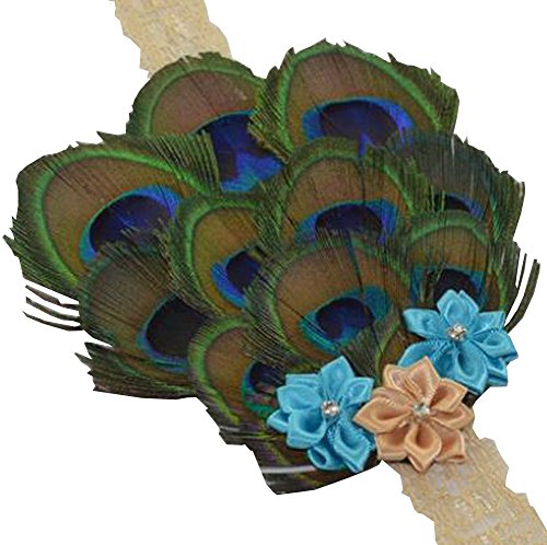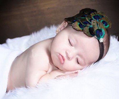 赤ちゃん 新生児 ベビー小物 お姫様 髪飾り ヘアアクセサリ ヘアーバンド カチューシャ ヘッドバンド 出産祝い 誕生日 プレゼント ギフト きれい 孔雀の羽