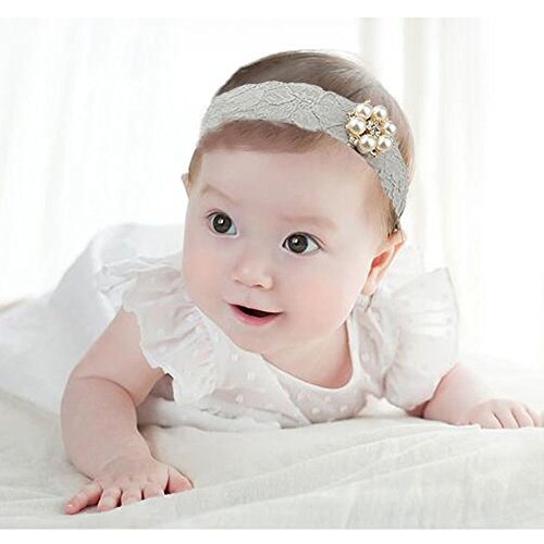 赤ちゃんの女の子のヘアバンドプリンセスレースヘッドウェア弾性のヘアバンド- グレー
