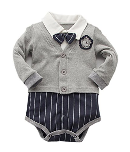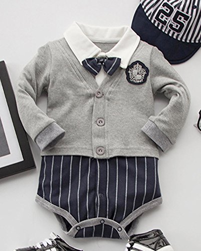 春/秋のベビーキッズボーイズガールズシャムトライアングルTlagsロンパースグレーストライプ