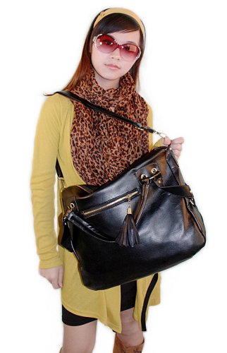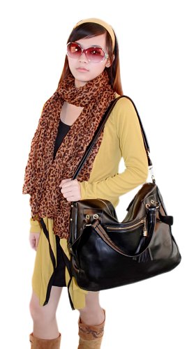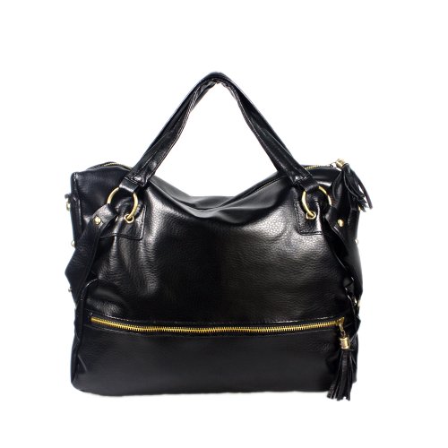 ブラック スタイリッシュ 人工皮革バッグ/ハンドバッグ/ショルダーバッグ/トートバッグ