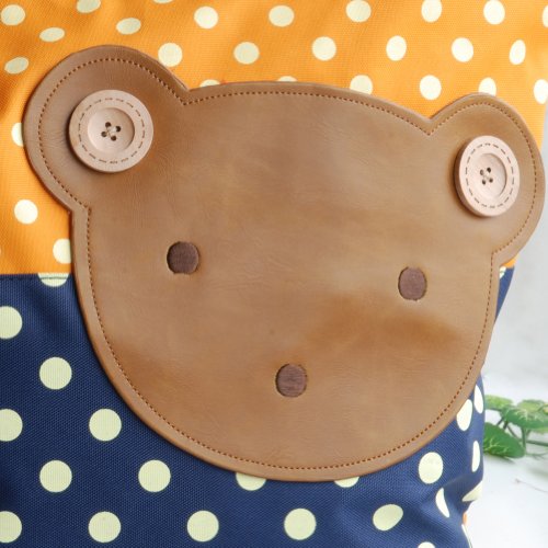 [クマ-オレンジ] Blanchoアップリケ キッズ ファブリック アート ミニ ショッパーバッグ/トートバッグ-Lサイズ(H)32.00cm* L)41.91cm* W)13.97cm)