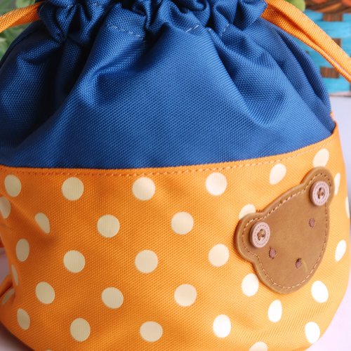 [クマ-オレンジ] Blanchoアップリケキッズファブリックアートバケットバッグ/お弁当ランチボックス/買い物バッグ(19.81cm*14.48cm*16.00cm)