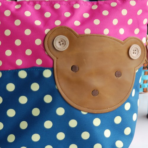 このかわいいファブリックアートキッズバッグ/ショッピングバッグ/トートバッグは、ラブリー クマや小さなドットやバイカラーデザインと通して,完全にハンド アップリケデザインを目立させています。 サイズ:H)26.92 cm* L)33.78cm * W)12.95 cm,またドロップストラップは20.3cm。 内側ポケット1つがあります。大きなインテリアは、お必需品のすべてを保持することができます。美学と機能性の結晶とは言えます。この可愛くてカラフルなキッズバッグは、丈夫なオックスフォード生地で作られた,そのため,ショッピングには非常に便利です。仕事,学校,旅行,買い物やベビー用品など場合にも最適です。このバックを買うと,その耐久性や多用途を見つけることができます。アップリケ刺繍入りの多目的バックは愛らしくて、持っている必要があるアクセサリとは言えます。