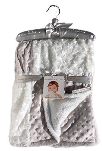 Blankets & Beyond Rosette and Dots Baby Blanket, Light Grey and White W/ Decorative Satin Hanger by Blankets and Beyond