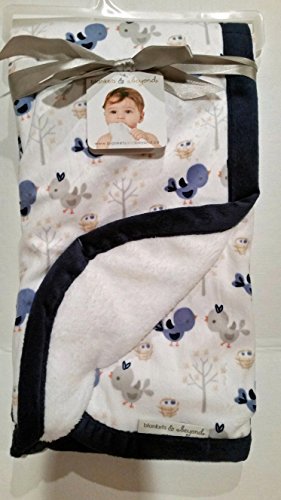 Blankets & Beyond Birdie Blanket with Navy Blue Border