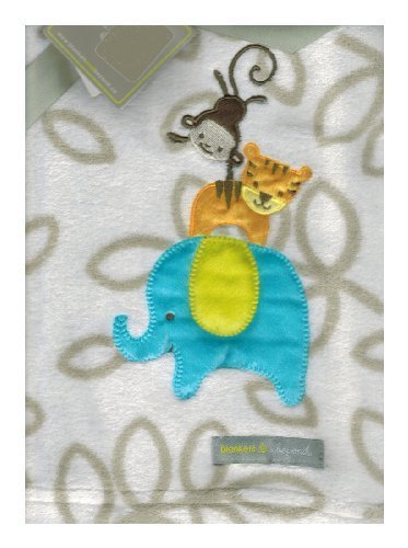 Elephant, Tiger & Monkey Tan Baby Blanket By Blankets & Beyond [並行輸入品]