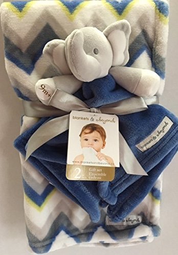 Blankets & Beyond Blue, Grey & Yellow Blanket and Elephant Security Blanket Set by Blankets and Beyond