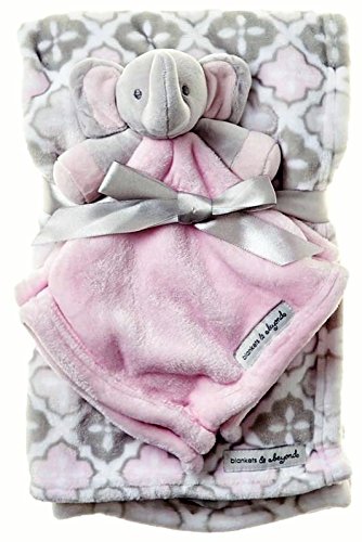 Blankets & Beyond Pink & Grey Blanket with Elephant Security Blanket Set