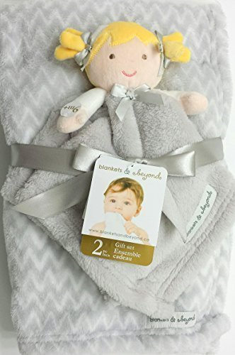 Super soft and cozy baby blanket and security blanket;Blanket measures 28 inches x 32 inches with a grey and white zigzag pattern;Security blanket is approx 16 in square - pink doll with blond hair;Made from 100% Polyester;Blanket is machine wash - tumble dry, Doll is hand wash - air dry