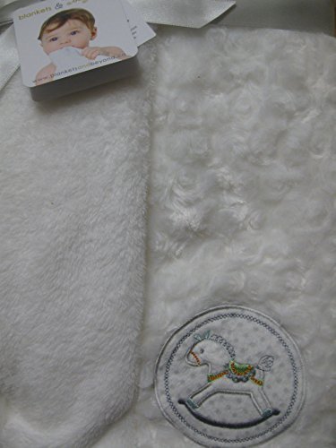 Soft Reversible White Blanket with Rocking Horse by Blankets and Beyond