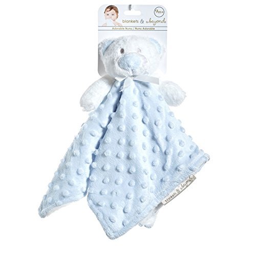 Teddy bear baby boy blue and white security blanket with dots by Blankets and Beyond
