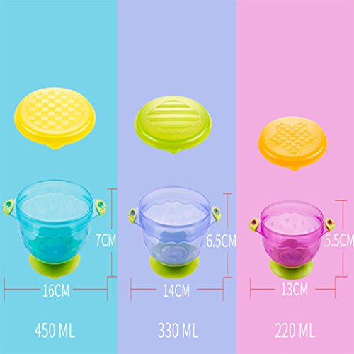 Blesiya 3個 ベビー 赤ちゃん 安全 滑り止め 給餌ボウル 吸盤付 蓋付き 可愛い 高品質 ボウル 異なるサイズ