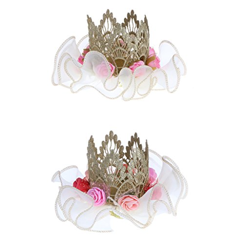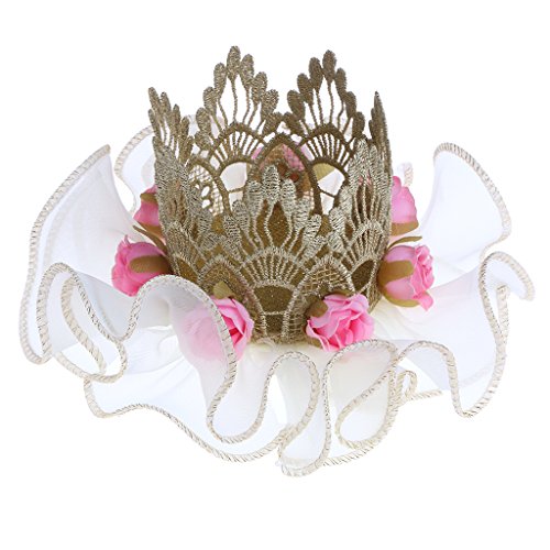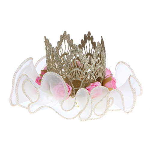 - これらの楽しいパーティのクラウンは、あなたの季節のお祝いに黄金の光沢を加えます。美しいバラの花とレースの装飾とキッドガールズプリンセスクラウンのヘッドバンド