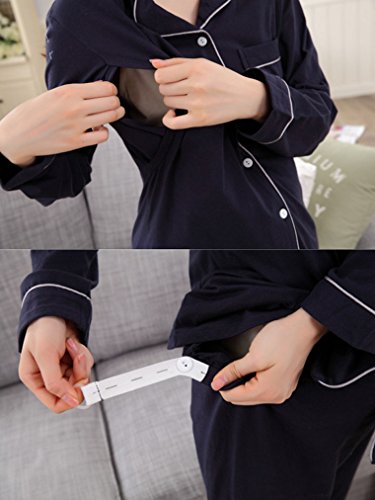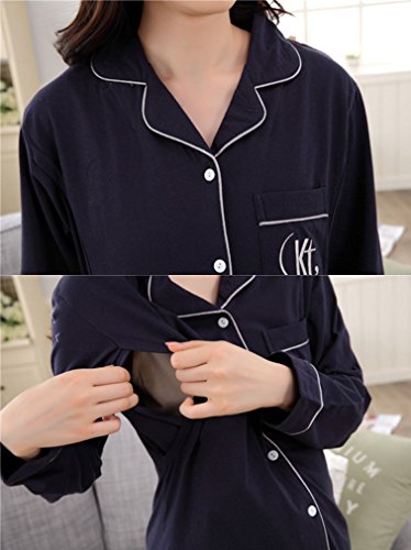 Bling Cat パジャマ マタニティ 長袖 上下 セット 前開き 授乳口 レディース 部屋着 (M, ネイビー)