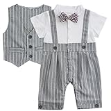 (イーエフイー)EFE ベビー服 ロンパース+ベスト 2点セット 紳士風 ネクタイ 半袖 結婚式 記念撮影 お祝い ホワイト&グレー 70/80/90/95 グレー 70