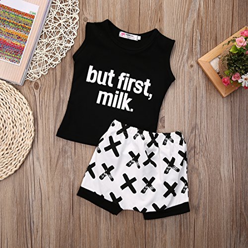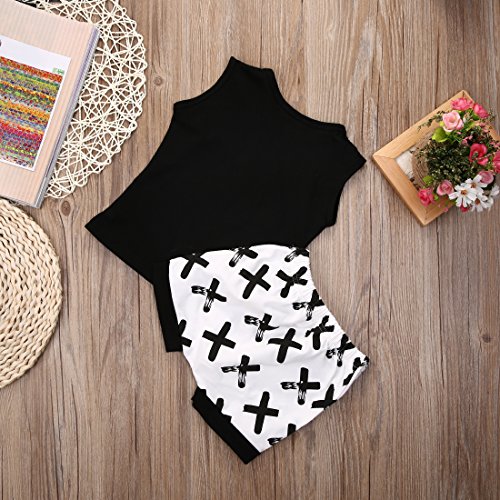 ベビー服 ベビー 赤ちゃん 男の子 女の子 Tシャツ 短パン シャツ セット 夏 可愛い 涼しい コットン 綿 (70(3-6ヶ月), ブラック)