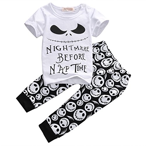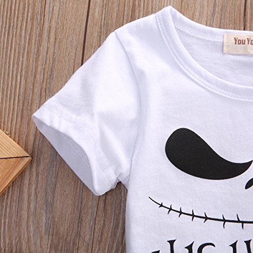 ハロウィン 子供服 ベビー服 海賊 シャツ パンツ 上下2点 セット かわいい カッコイイ 男女兼用 (100(12-18月), ホワイト)