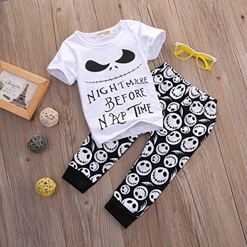 ハロウィン 子供服 ベビー服 海賊 シャツ パンツ 上下2点 セット かわいい カッコイイ 男女兼用 (80(3-6月), ホワイト)