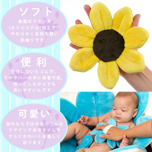 ブルーミングバスをそのまま小さくしたようなかわいいデザインの赤ちゃん用バススポンジ。表面はフラシ天(ポリエステル)加工で、やわらかくソフトな肌触りで、赤ちゃんも気持ちよく沐浴できます。別売りのブルーミングバスと合わせて使えば楽しい沐浴タイムになりそうですね♪♪