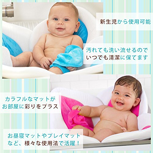 かわいいカラフルなお花が咲いたようなデザインの、大人気の沐浴マット【ブルーミングバス】。安定感がさらにアップしたLotus(ロータス)シリーズは4枚の花弁でフィット感がさらにアップ!シンクなどの限られたスペースでも安定し、パパやママも屈んだりと無理な姿勢を取らずに沐浴させることが出来るので、体に負担がかかりにくくなります。 シンクに敷くタイプの沐浴マットは、薄く安定させる事が難しい事がしばしばあるため、新生児時期の沐浴が難しく感じていた方にもブルーミングバスなら安心♪クッション性抜群で厚みがあるしっかりした素材がベビーを優しく包みこみます。花びらに包まれた妖精のようなベビーの姿は毎晩のお風呂タイムがもっと楽しみなものにしてくれますね!沐浴マットとして使わなくなった後もオムツ替えマットやプレイマットとしても活躍してくれます。ビビッドなカラーでお部屋のインテリアにもGOODです。