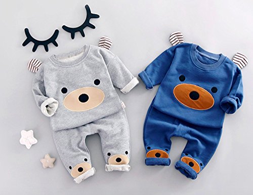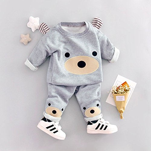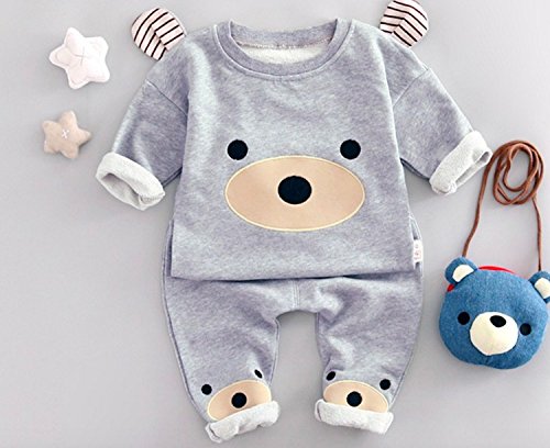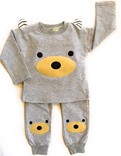 BloomingDays キッズ パジャマ ベビー 服 上下 セット 長袖 長ズボン 丸首 クマ 寝巻き (グレー 80)