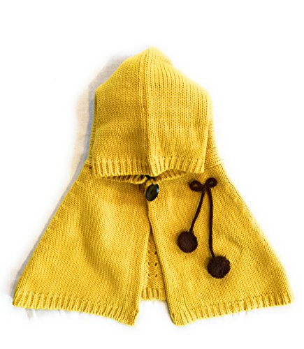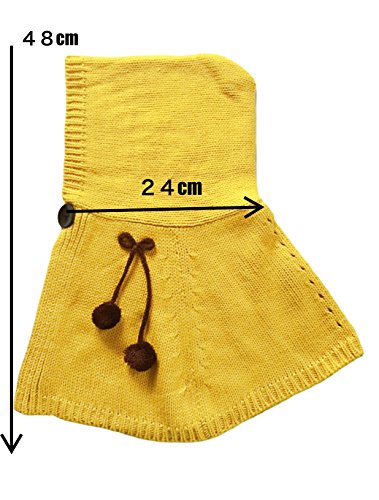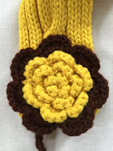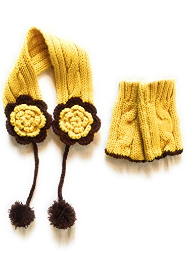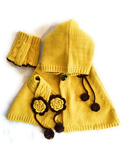 BloomingDays ベビー ニット帽 キッズ ニット帽子 ケープ お花 マフラー 手袋 あたたか 3点 セット ボンボン 付き ポンチョ (黄)