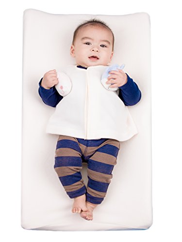 Safe, Soft Changing Pad Cover with Detachable Vest & Attachable Toys;Used to Secure Baby, Prevent Mess and Distract Baby;Two Ways to Secure Baby whether they're upright or lying down;As seen in Forbes, The Huffington Post, Examiner, and KidsToday;100% Polyester. Newborn through toddler stages