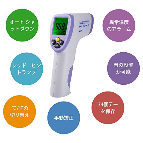 - 高精度のデジタル非接触式体温計です。 赤ちゃん、子供、病人など、直接測温が難しい場合でも瞬時に測る事が出来ます。