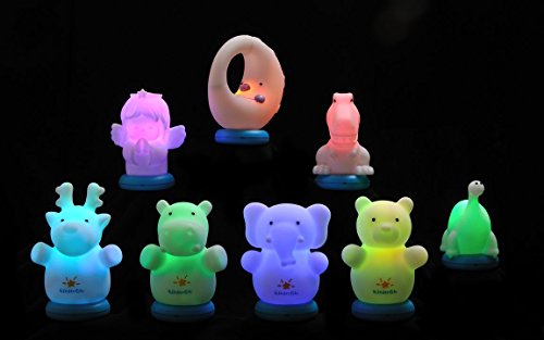 KinderGlo automatically dim and shuts off after 30 minutes in all color settings, press and hold for three seconds to keep the KinderGlo on.. KinderGlo night lights provide soft light to help ease, calm and comfort at bedtime. KinderGlo is designed for little hands to easily hold and carry while being durable and fun. Rechargeable, portable, BPA and lead free, soft to the touch, and perfectly safe for kids to carry around or cuddle with in bed. Easy to operate with one big button to allows you to choose soothing changing colors or constant blue, red or green light. KinderGlo will automatically dims and shuts off after 30 minutes in all color settings, press and hold the button for three seconds to keep the KinderGlo on continuously. KinderGlo night lights provide soft light to help ease, calm and comfort at bedtime, but are also soft, cuddly animal shapes that will become your child's new bedtime best friend. These LED, rechargeable night lights are made of a non toxic plastic that won't ever get hot to the touch, meaning your kid can safely keep these in their bed with them all night. Let your kids pick their favorite shape and then watch them play with the different colored light options as bedtime becomes just a little bit easier.