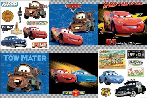 31720452 Features: -Self stick decorating kit.-Age range: 3 - 11 years.-Use on walls, mirrors or any smooth surface.-Removable wall art and won't harm walls.-Coordinates with other Disney d cor products.-Quick and easy application.-Fun and fashionable alternative to posters and an affordable alternative to framed art.-Just peel and place. Includes: -Includes four coordinated pieces of art plus and thirty accent stickers.