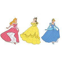 Disney Princesses Cinderella Aurora and Belle 3 Piece Foam Wall Decor. ake your own scene using these 3 characters. All your favorite characters made from soft, safe and washable material. Double-sided self-adhesive strips, which allow you to transform your walls in seconds, are included.