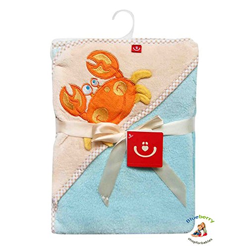 BlueberryShop 3D Embroidered Microplush HOODED Bath Pool Beach TOWEL Baby Kid Todler Gift (30" x 31.5") ( 0-8 Yrs ) ( 76 x 80 cm ) Blue