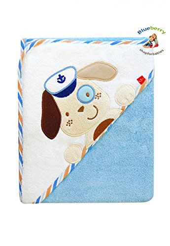 BlueberryShop Embroidered COTTON HOODED Bath Pool Beach TOWEL Baby Kid Todler Gift (31.5" x 31.5") ( 0-8 Yrs ) ( 80 x 80 cm ) Blue