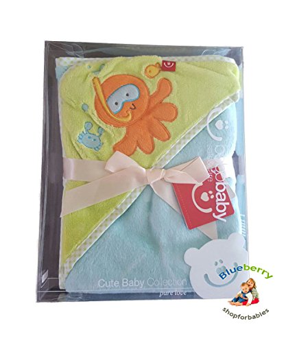 BlueberryShop 3D Embroidered Microplush HOODED Bath Pool Beach TOWEL Baby Kid Todler Gift (30" x 31.5") ( 0-8 Yrs ) ( 76 x 80 cm ) Green