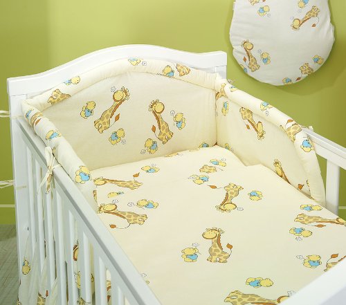 BlueberryShop 2 pcs BABY COT BED BUNDLE BEDDING SET DUVET+PILLOW COVERS 90 x 120 cm (35.5" x 47") ( 0-7Yrs ) ( 120 x 90 cm ) Cream Giraffe