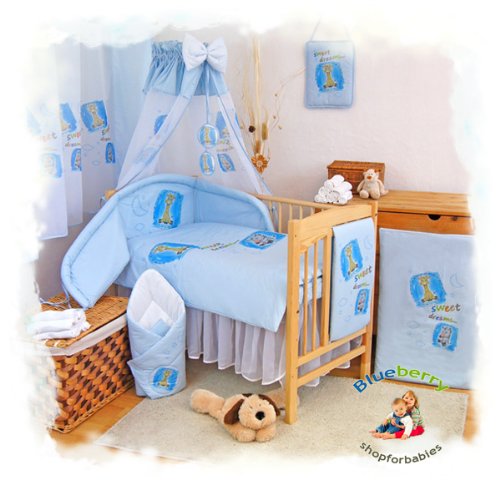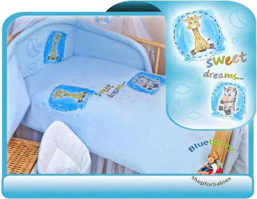 BlueberryShop 2 pcs BABY COT BED BUNDLE BEDDING SET DUVET+PILLOW COVERS matching cot bed 120 x 150 cm (47" x 59") ( 1-8 Yrs ) ( 150 x 120 cm ) Blue Giraffe