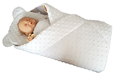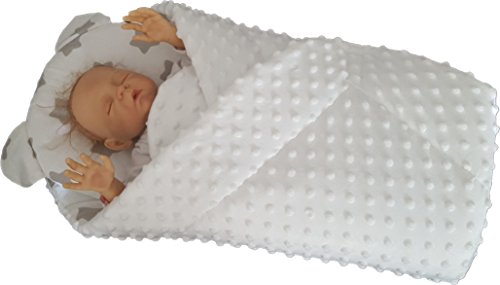 BlueberryShop MINKY with Pillow Very WARM and Cute Swaddle Wrap Blanket Sleeping Bag baby shower GIFT PRESENT 0-3m ( 0-3m ) ( 78 x 78 cm ) White