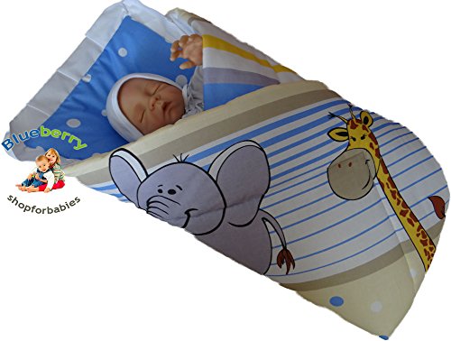 Improve your newborn's sleep patterns with a baby swaddle Our beautifully made baby wrap blankets with duvet and cushion are designed for newborns between 0 and 3 months of age, and can help improve your baby's sleep routine whilst allowing you to carry your child more safely. Our special Gift Present offer allows you to purchase the item and have it beautifully gift wrapped with a decorative star - an ideal present for a newborn child! All of our baby swaddles are brand new, unused, made of 100% cotton, hypoallergenic, and are designed for your baby's safety and comfort in mind, whilst making the often tiring task of being a new parent that little bit easier to bear. Why Buy a Baby Swaddle? Throughout the first three months of a newborn's life, the baby seeks comfort and intimacy. This need for being continually swaddled inevitably impacts on the baby's sleep routine. A baby swaddle is specially designed to snuggly wrap your child to simulate the environment of the womb - that of closeness and warmth. A baby swaddle also makes it far easier to pick up your delicate child without fear of waking him/her.
