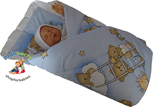 BlueberryShop Classic with Pillow Swaddle Wrap Blanket Sleeping Bag for Newborn, baby shower GIFT 100% Cotton, 0-3m ( 0-3m ) ( 78 x 78 cm ) Blue Bear on Ladder