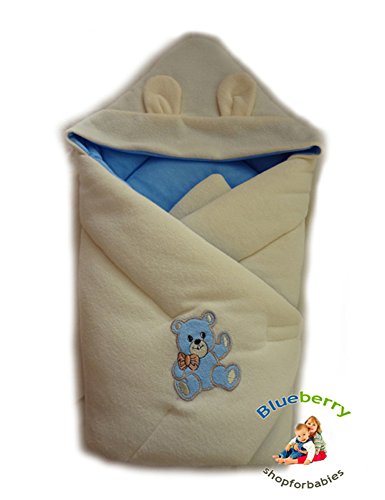 BlueberryShop Hooded Thermo Terry Swaddle Wrap Blanket Sleeping Bag for Newborn, baby shower GIFT 100% Cotton, 0-3m ( 0-3m ) ( 78 x 78 cm ) Blue