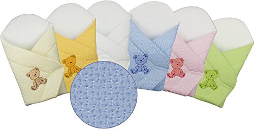 Luxury blanket & swaddles are made from 100% satin cotton that has been thoroughly tested to Oko-Tex 100 standards, ensuring the safety of your baby's delicate skin at all times. These baby swaddle blankets are specially designed to keep your baby snug and warm, emulating the cosy environment of the womb. The result is a more restful sleep for both baby and parents, and allows mother and father to pick up their child without fear of waking him/her. Swaddles are specially designed to make washing them a breeze. No matter how many times they are washed, the colours won't fade. And because they are made from the highest quality natural textiles, not with harsh chemicals, you can rest assured that the swaddles are safe and won't harm your baby. A snuggled, cosy night's sleep is what newborn swaddles deliver, and they certainly don't disappoint. Specially designed from every step of the production process, even from choosing milder, quiet colours that won't cause anxiety or disturb your little one's sleep, from the accredited production process that ensures the safety of your baby, snuggle wraps are certainly an ideal present for new parents. Rest assured that all of our swaddles are brand new, unused and made to accredited standards to ensure the safety of your child's soft, delicate skin.
