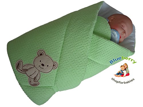 BlueberryShop Classic Pearl Swaddle Blanket Wrap Duvet for Newborn Baby 100% Cotton Baby Shower Gift ( 0-3m ) ( 78 x 78 cm ) Green