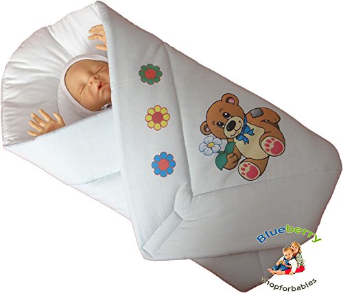 BlueberryShop Classic with Animal Print Swaddle Wrap Blanket Duvet for Newborn Baby 100% Cotton ( 0-3m ) ( 78 x 78 cm ) Cream Bear