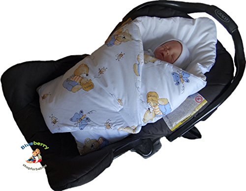 BlueberryShop Luxury Classic for CAR SEAT Swaddle Wrap Blanket Sleeping Bag for Newborn, baby shower GIFT Cotton 0-3m ( 0-3m ) ( 78 x 78 cm ) Blue Bear