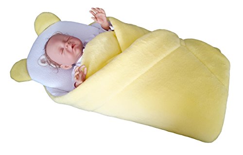 BlueberryShop FLEECE with Pillow Very WARM and Cute Swaddle Wrap, Blanket, Sleeping Bag, baby shower GIFT PRESENT 0-3m ( 0-3m ) ( 78 x 78 cm ) Yellow