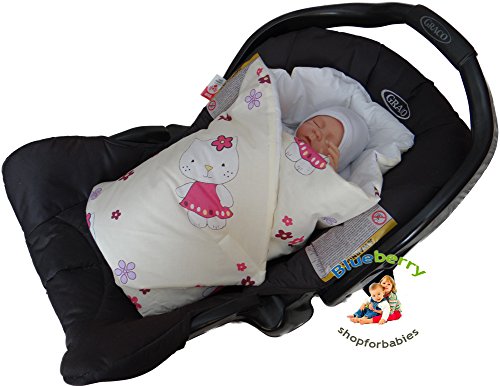 BlueberryShop Luxury Classic for CAR SEAT Swaddle Wrap Blanket Sleeping Bag for Newborn, baby shower GIFT Cotton 0-3m ( 0-3m ) ( 78 x 78 cm ) Cream Kitty