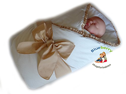 BlueberryShop Satin Swaddle Wrap Blanket Duvet for Newborn Baby 100% Cotton 0-3m ( 0-3m ) ( 78 x 78 cm ) Gold