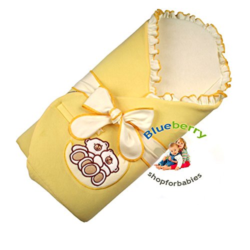 BlueberryShop Velour Embroidered Swaddle Blanket Wrap for Newborn Baby Stiffened / Hard Back (Removable Sponge Insert) ( 0-3m ) ( 78 x 78 cm ) Yellow