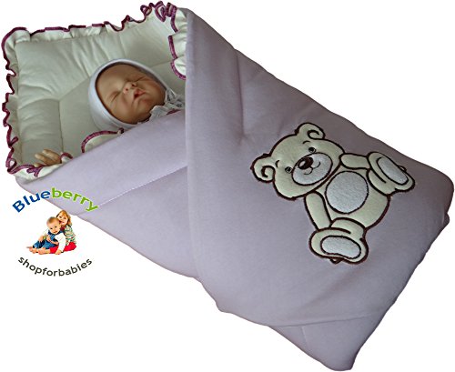 BlueberryShop Embroidered Jersey Swaddle Wrap Blanket Sleeping Bag for Newborn, baby shower GIFT 100% Cotton, 0-3m ( 0-3m ) ( 78 x 78 cm ) Purple